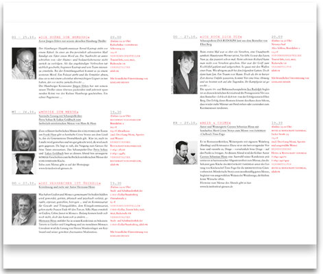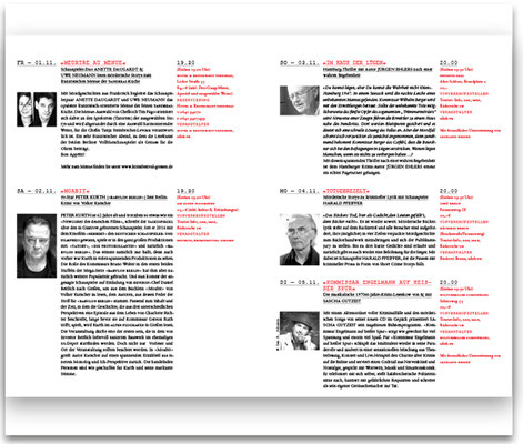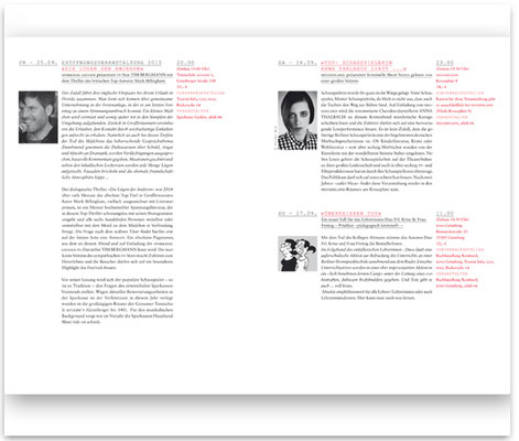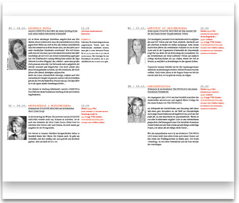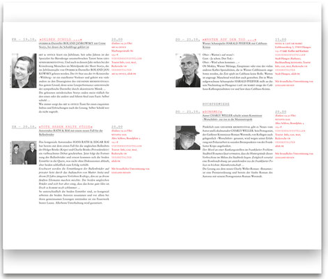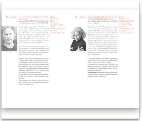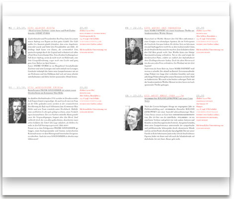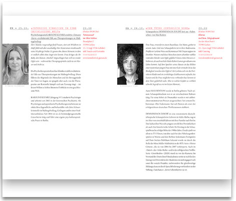 Sie sehen Umschlag und Beispielseiten der jeweiligen Veranstaltungs-Programme.