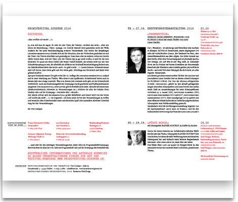 in Gießen ist das spannende, spektakuläre Krimifestival mit viel Prominenz aus Theater, Film, Fernsehen und Literatur, Kriminalliteratur, um genau zu sein.
