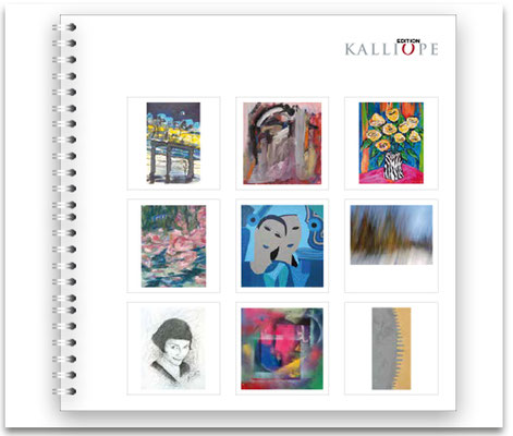 Kunst-Jahreskalender in Buchform mit Abbildungen von Malerei und Fotografie diverser Künstler (linke Seite, Wochenkalendarium rechte Seite)